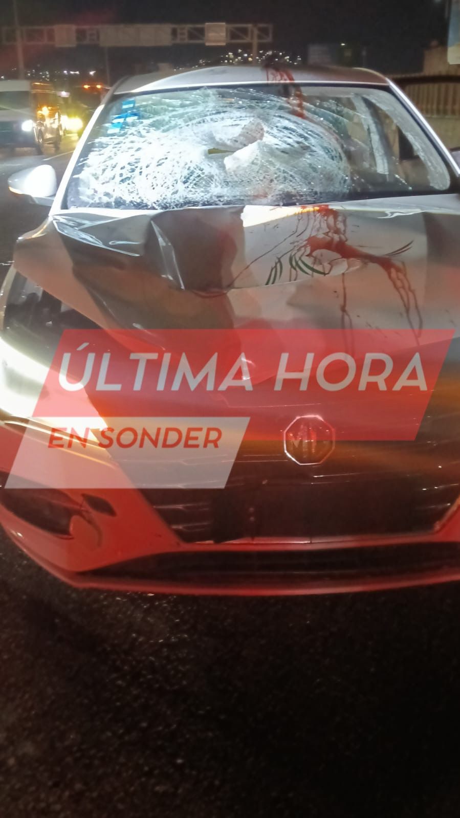 De acuerdo con los primeros reportes, la víctima —quien presuntamente habría ingerido alguna sustancia tóxica momentos antes del hecho— fue impactada por un automóvil MG 5 color blanco, mientras caminaba o intentaba cruzar la vialidad en una zona de alta velocidad.
