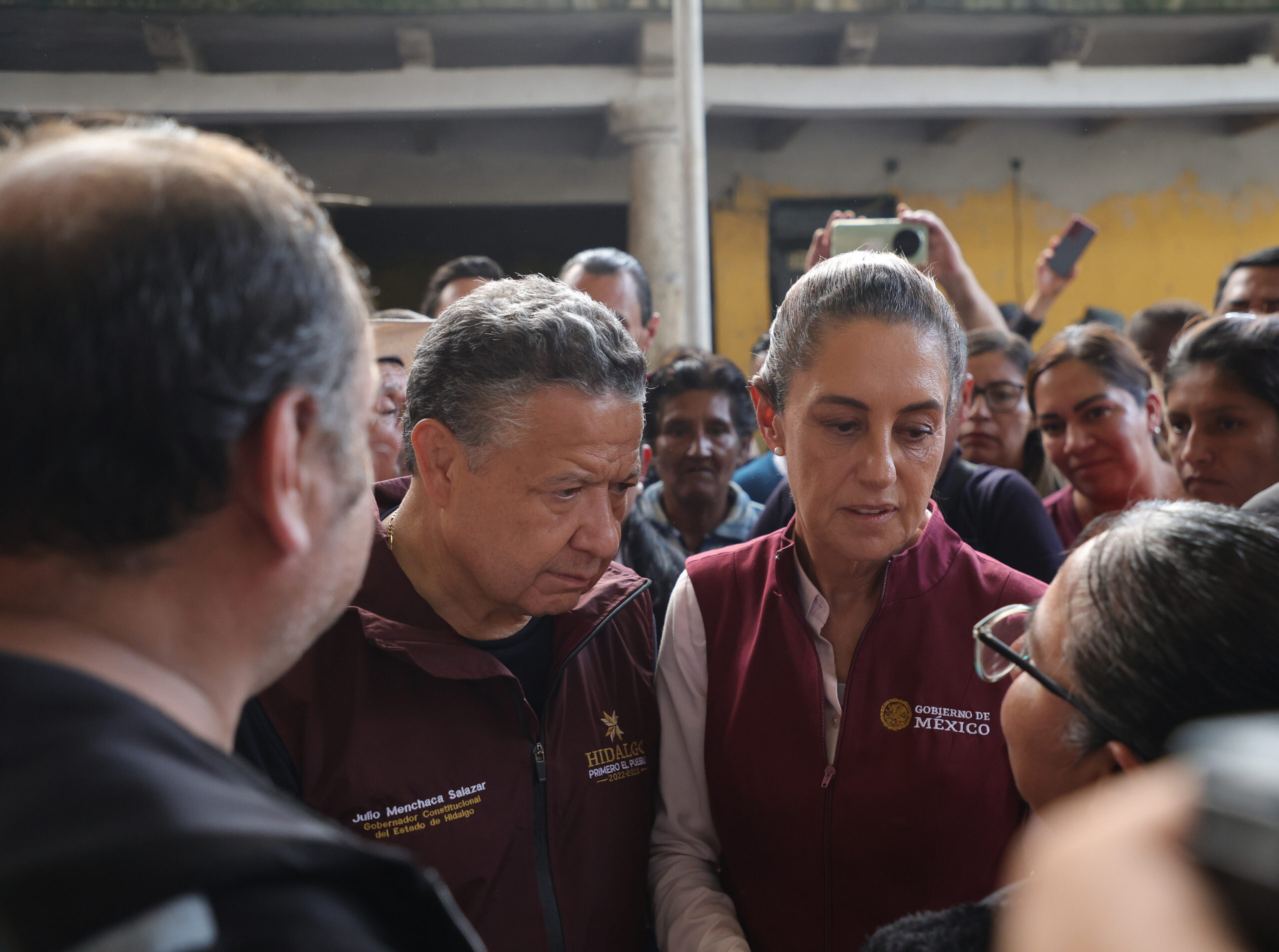 En su visita a Hidalgo, la presidenta Claudia Sheinbaum estuvo en comunidades de Huehuetla y Tianguistengo, dos de los municipios más afectados por las lluvias, donde reiteró el apoyo de su gobierno para la atención a la emergencia y posteriormente la recuperación.