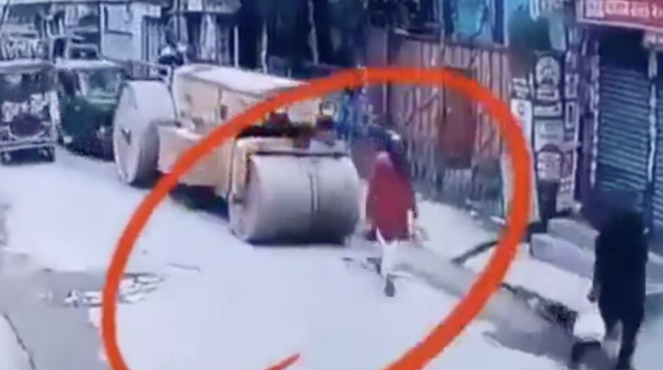 De acuerdo con las imágenes difundidas, la víctima caminaba por la zona cuando se colocó frente al rodillo de la maquinaria pesada.