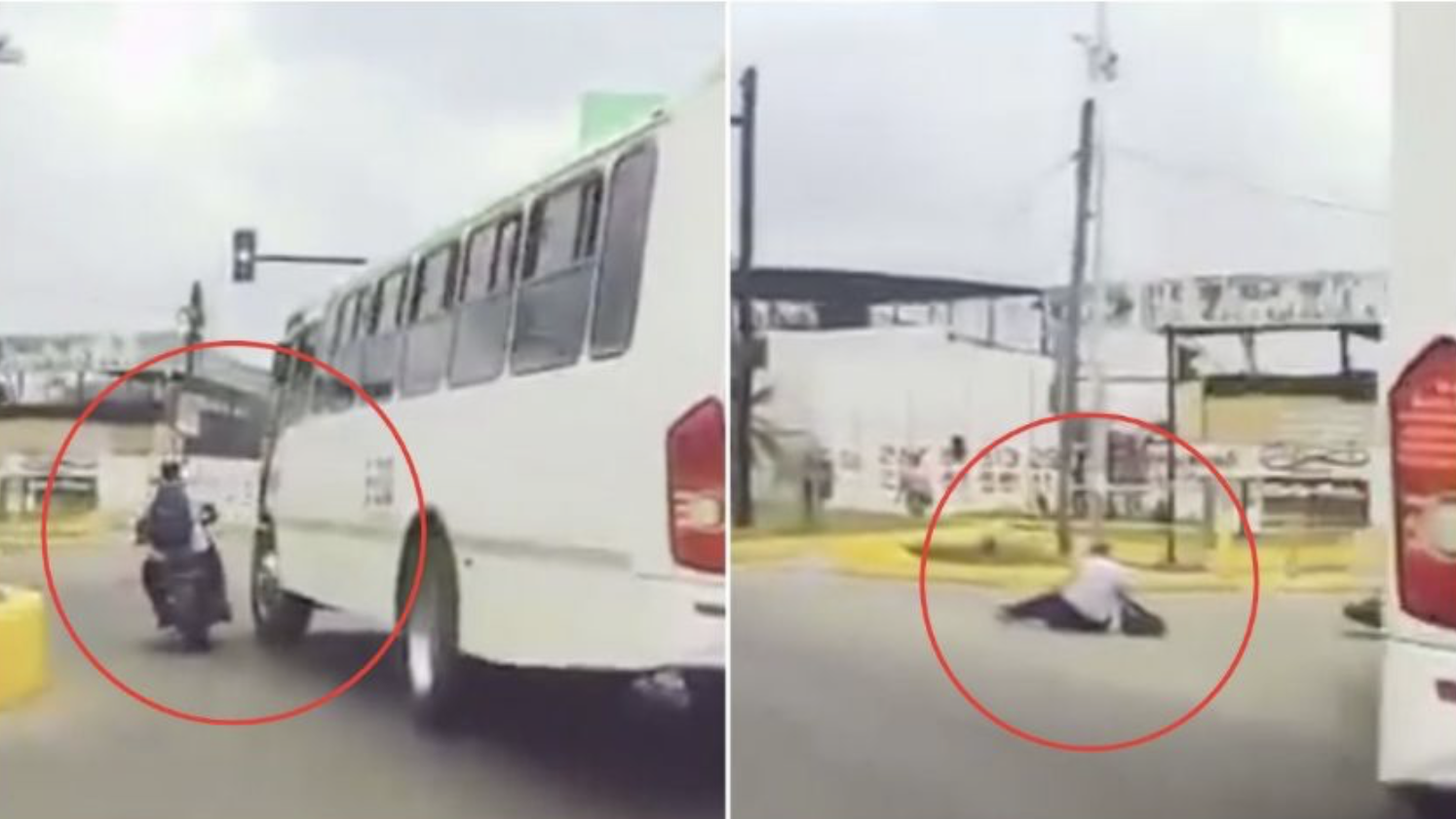 La falta de distancia y visibilidad provocó un contacto lateral que desestabilizó al conductor de la motocicleta, quien salió proyectado hacia el pavimento en cuestión de segundos.